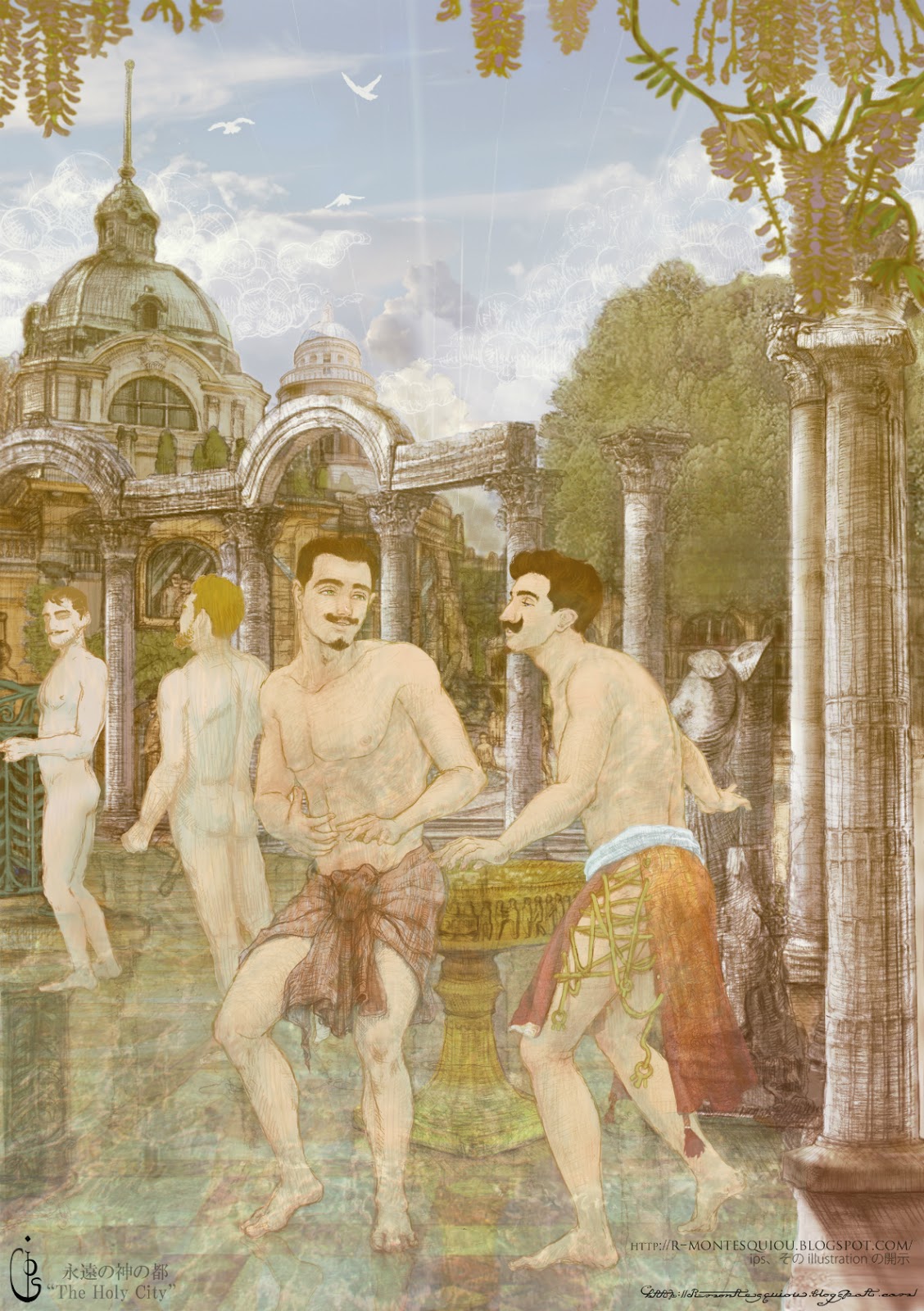 Mという文字は私にとり好ましい、幾つもの言葉と意味を想起させる。 ……Mâle, hoMMe, Monsieur, Montesquiou, et Moi-même…… これら文字の辺縁を飛び回る蝙蝠がいつまでも幸福の来襲の象徴であるように、この場所は私が、せめて儚きものどもの君主たらんと筆を取り縁取るようにして描くところである。